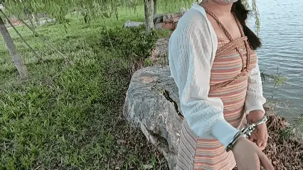 【苏苏】萝莉无遮挡胸缚手铐脚镣TD步行道户外露出,处处都是人