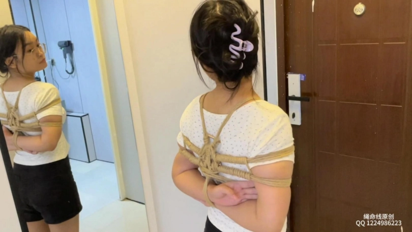 给欣欣绑了日式之后,去镜子那欣赏一下自己的美貌,然后给她绑上了驷马戴上口球,她说这个姿势还是挺舒服的,最后害羞的说戴上口球会有一种羞耻的感觉。哈哈哈!