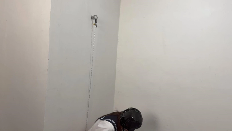 锁住双脚。唯一解锁钥匙在墙上的铁环上(用扎带拴住了,其实根本拿不到)