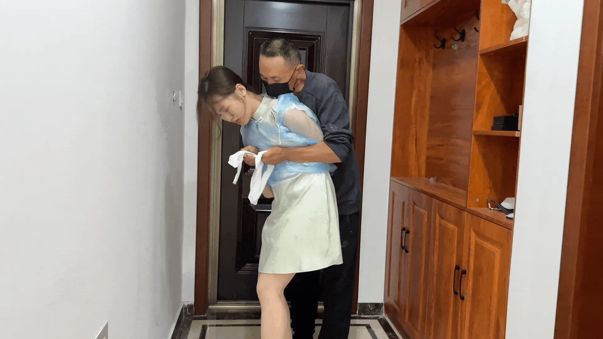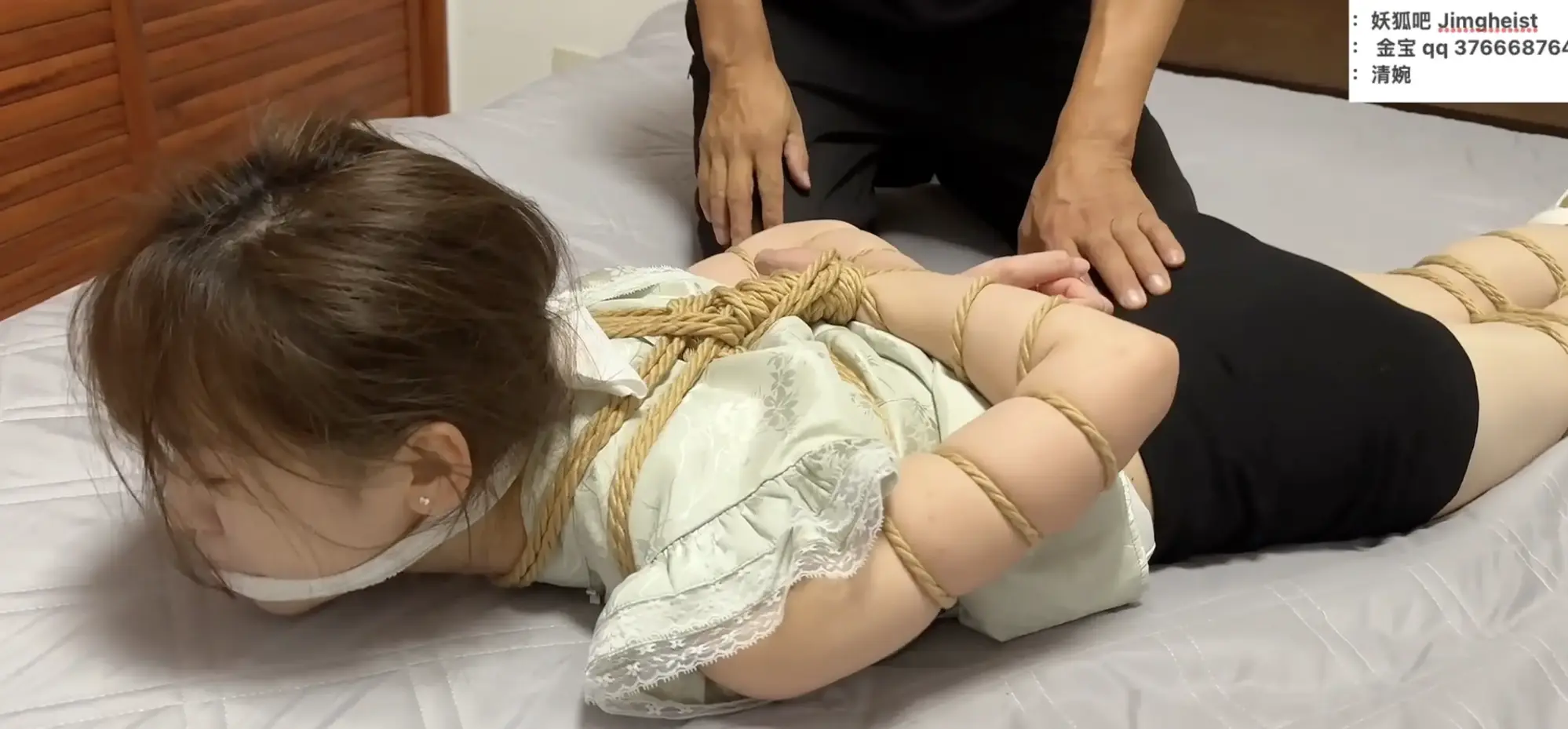 学生演员清婉人如其名,不仅面容姣好、身材挺拔,最可贵的是有一种清纯贞洁的气质,被撕扯雨衣、咸猪手搜身时羞辱的呜咽真实感十足,最后的绝望挣扎极为动人。缚手老师捆绑紧实、表演认真,让人恨的牙痒(同时羡慕不已)。