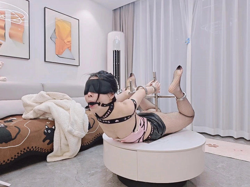 多付手铐驷马捆绑固定好塞上玩具之后蒙眼堵嘴把钥匙放在她的旁边让她自己摸索钥匙然后自己想办法打开,最终还是失败了!!?接下来更加难受的驷马固定器基本没有逃脱的可能性,只能任人摆布,各种喉咙训练到爽
