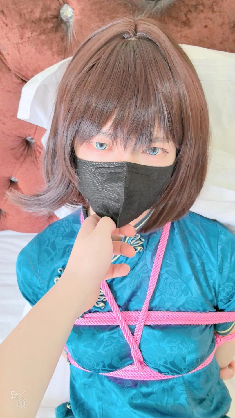 【逍遥】线下约玩!欧酱修身蓝色旗袍粉绳捆绑挣扎!呜呜声真好听!