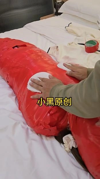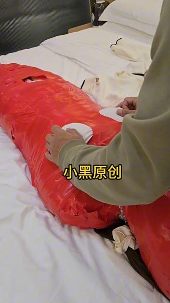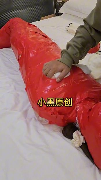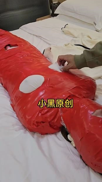 【小黑】胶带全包木乃伊,各种挑逗,真实对话,还有呼吸玩法,把胸口剪开,没穿内衣,乳头清晰可见,震动高潮,振到受不了。