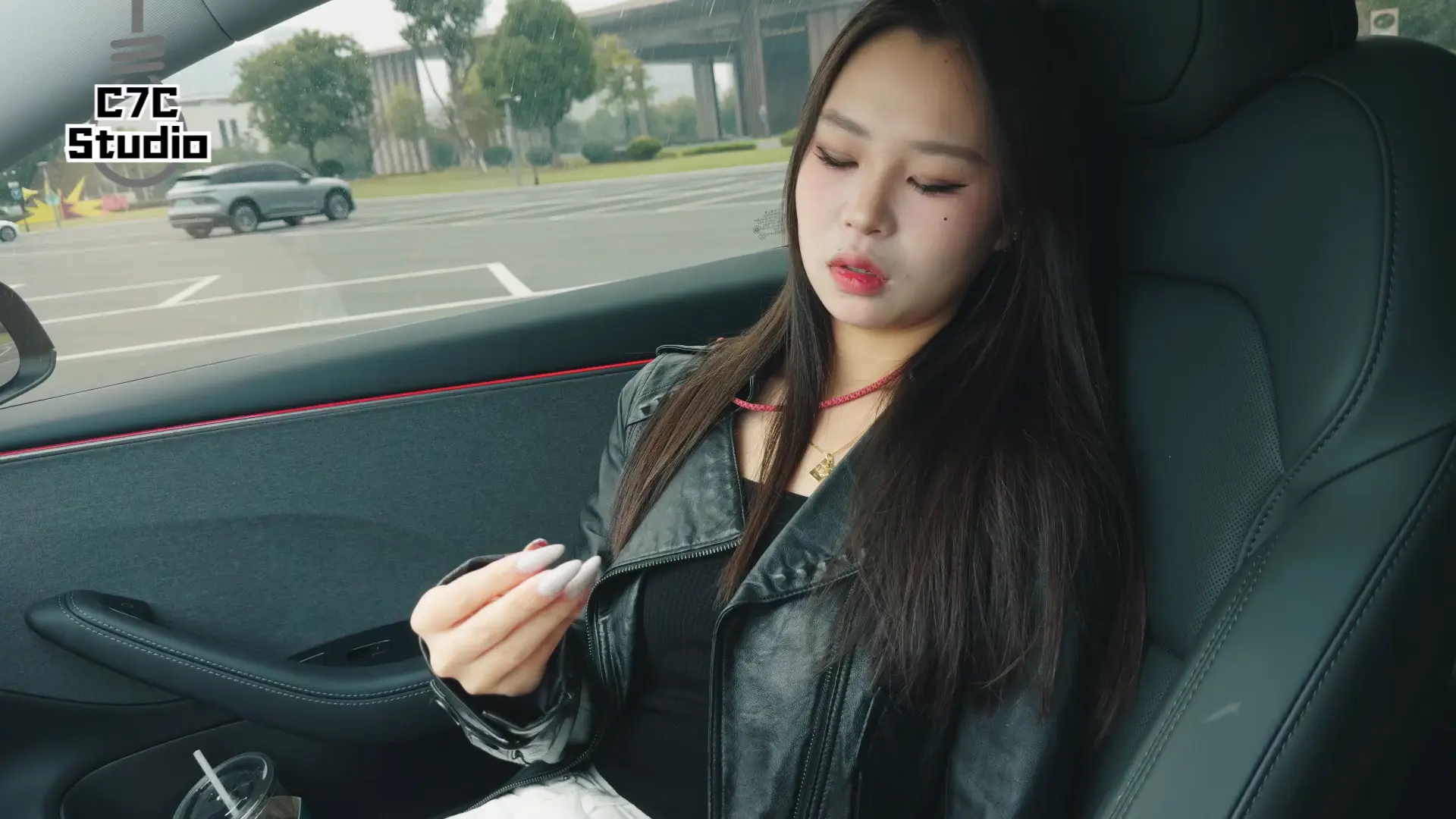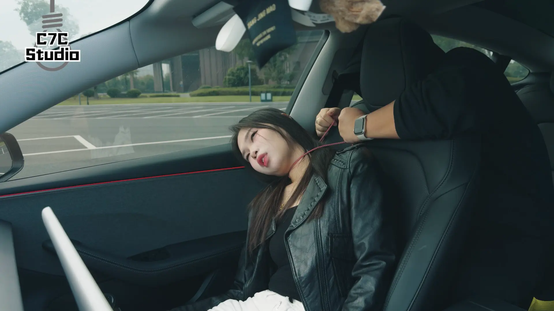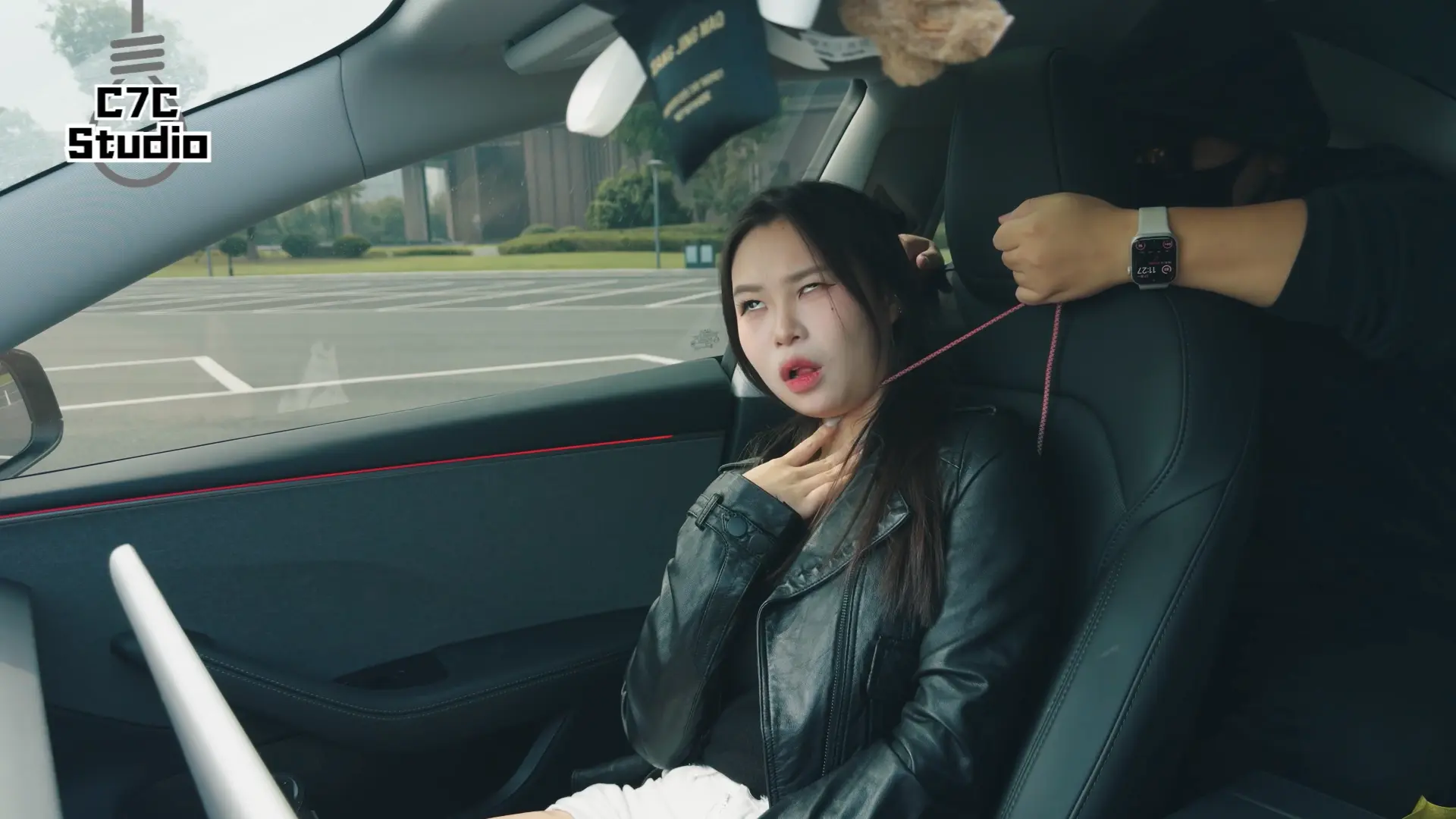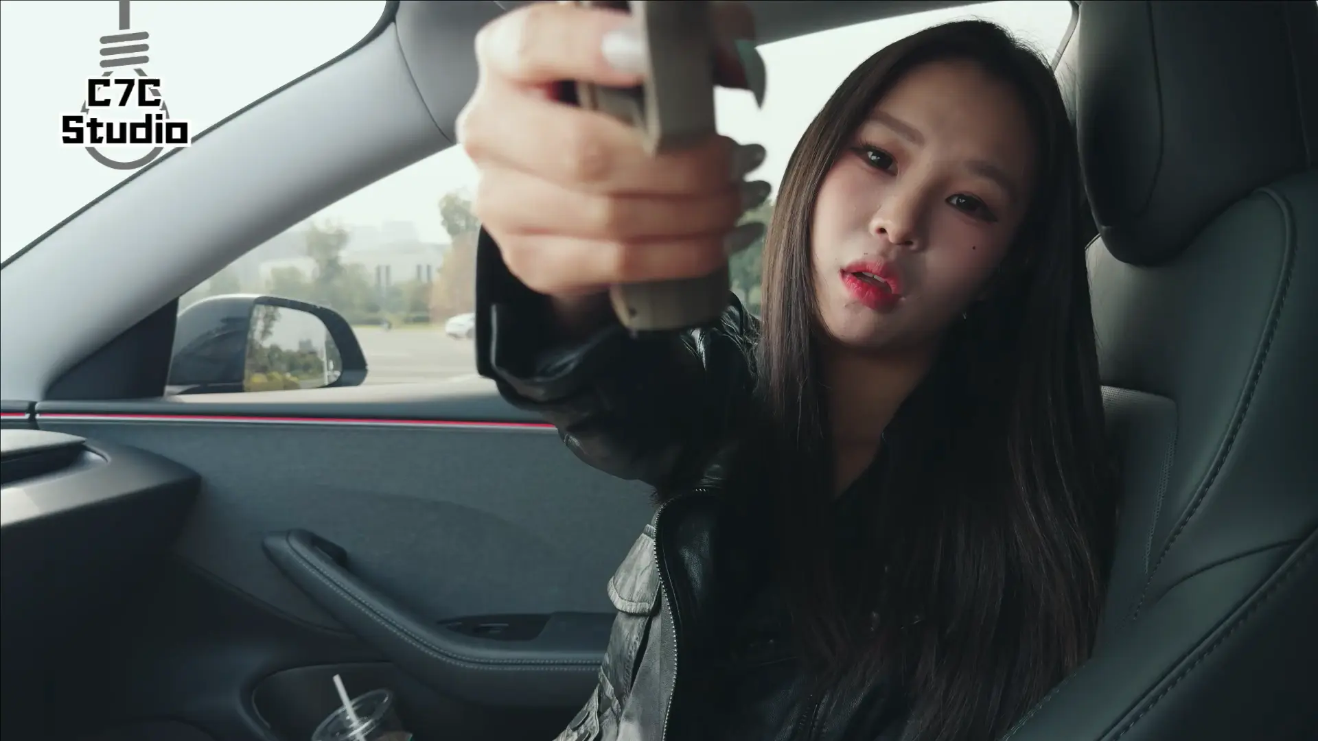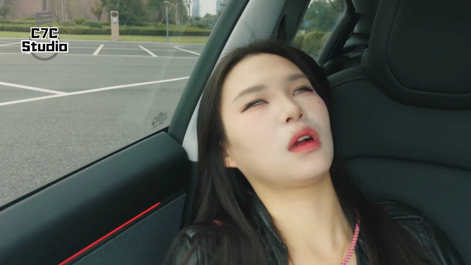 第一次尝试在车里拍摄...停车场的另一侧有自媒体在拍汽车的广告,赶紧拍完怕社死