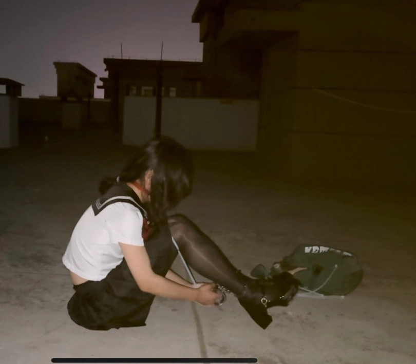 【柚里】痛苦的天台手脚铐驷马定时锁自缚!伪娘JK套裙➕黑丝玛丽珍高跟鞋
