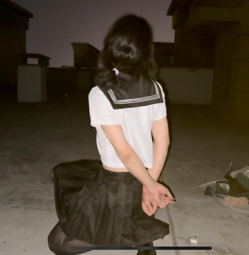 提前再后面塞满了,再用黑丝包裹住,穿上裙子和水手服,高跟鞋,来到这个不知道会不会有人经过的天台。经常听到电梯上下的声音,特别害怕有人过来看到我aaaaaaaa