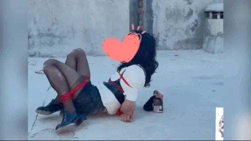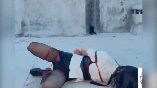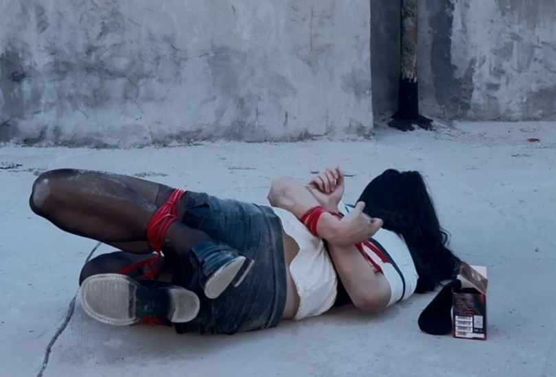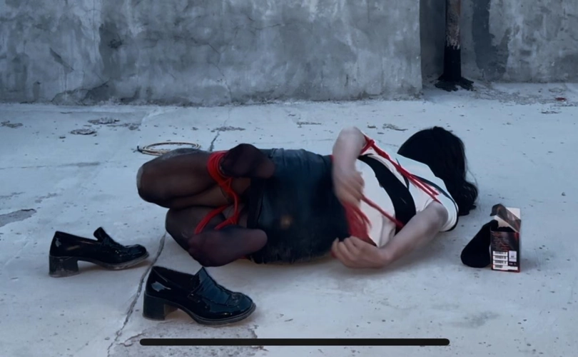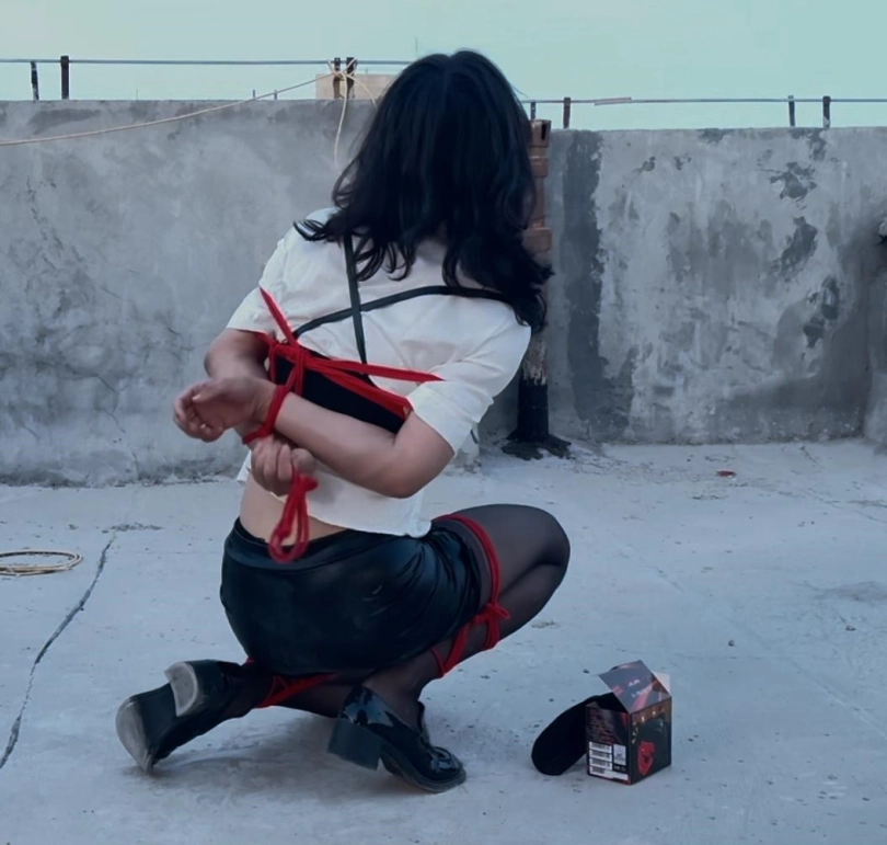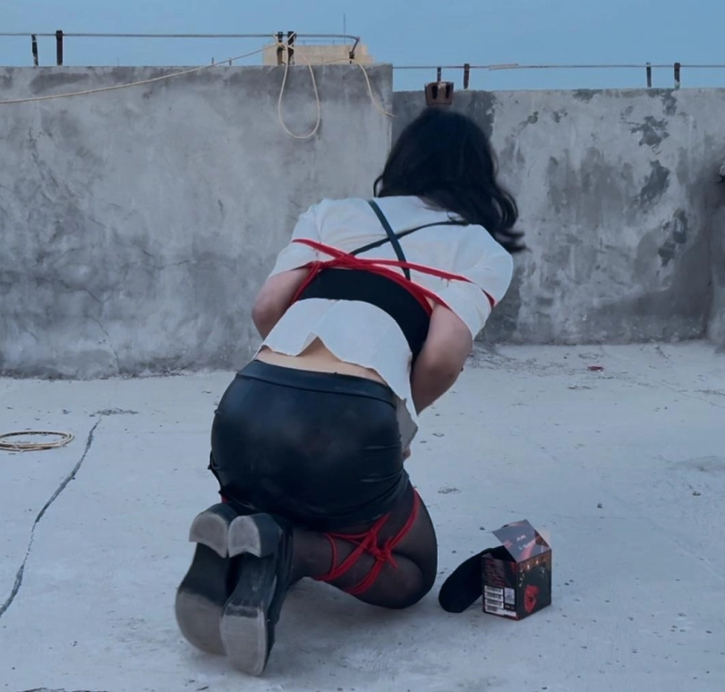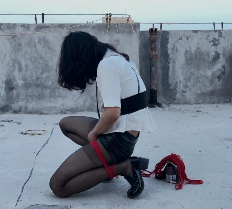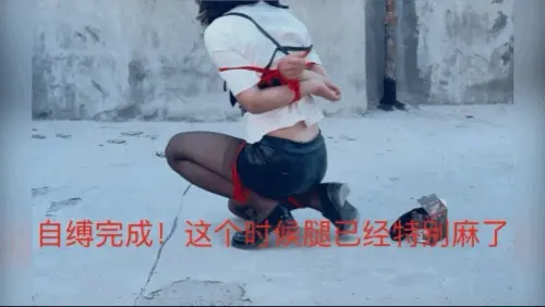 【柚里】小区天台屈辱折腿日式自缚教学&倒地挣扎滚满一身石灰&黑丝小皮鞋皮裙ol职业装