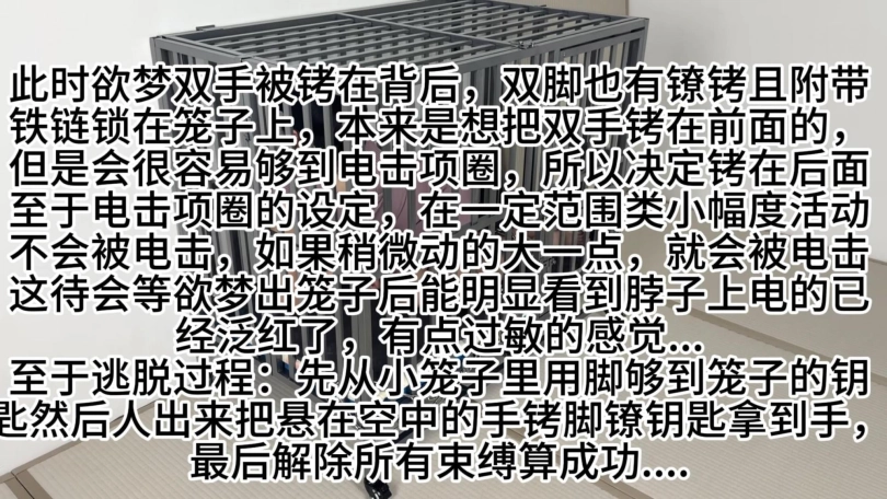 1:欲梦被锁在笼子里脖子上戴有电击项圈要在有限的时间内找到钥匙并开锁。