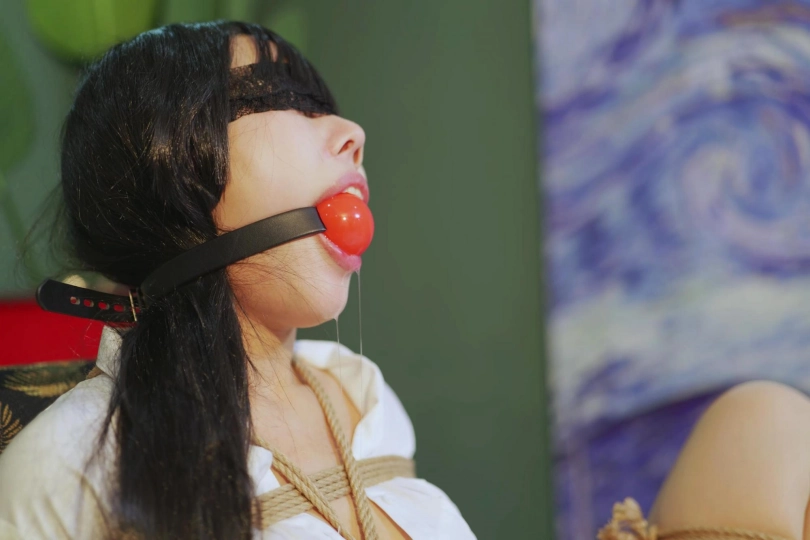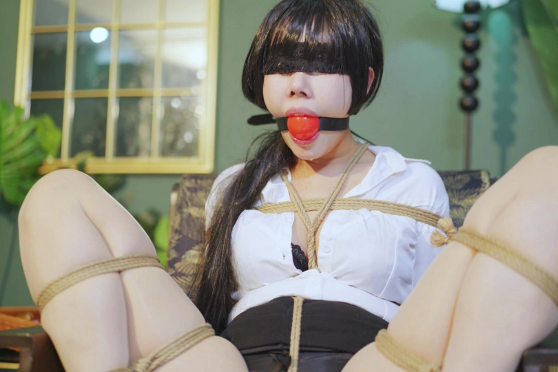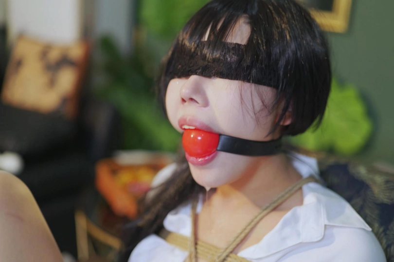 蒙上眼镜 给她佩戴上5cm的大口球