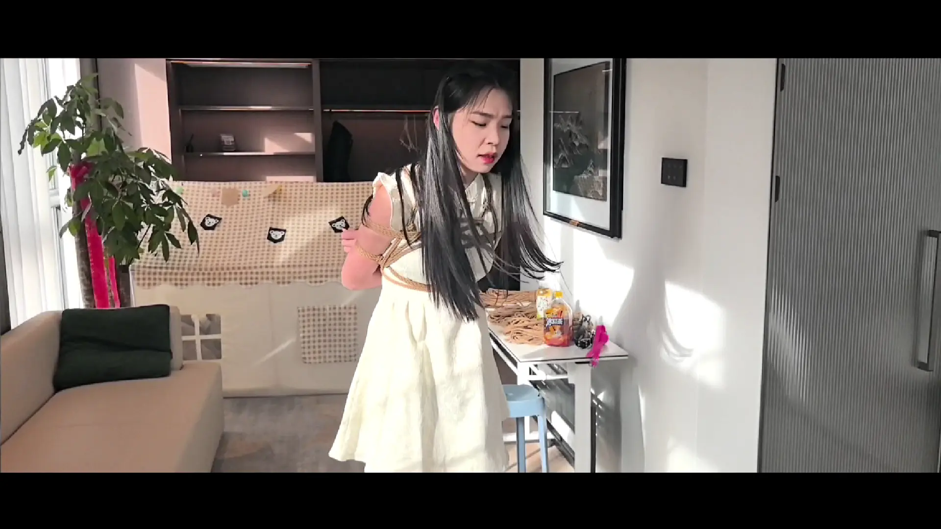语涵马具沙发床上放置挣扎 大号口球口水横流