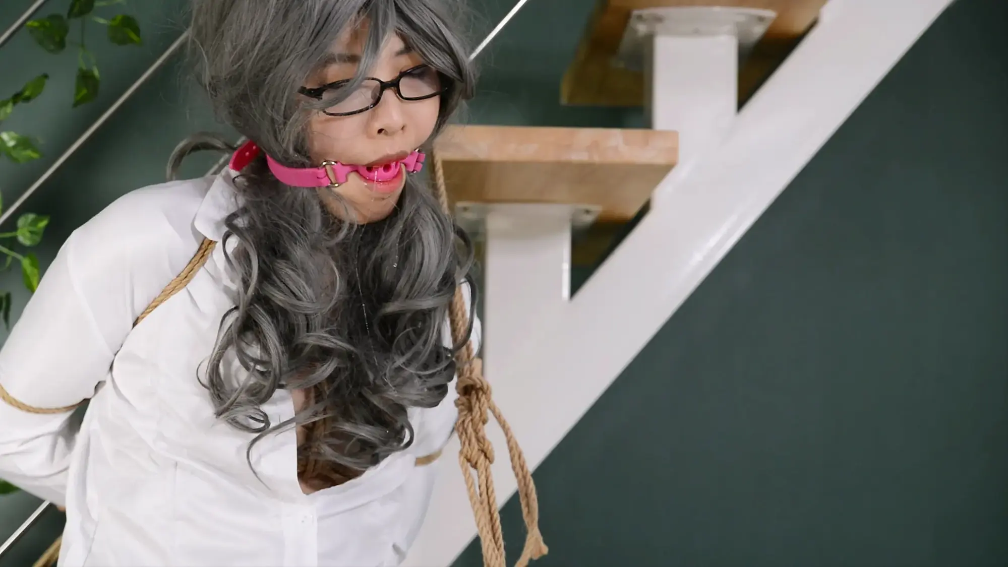 故事梗概:老板交代给秘书一件密文,特别嘱咐她不要让任何人看到内容当然也包括秘书她自己,好奇心爆棚的秘书趁老板不在,想着看看又能怎样,就翻开来准备瞥一眼就放回去,哪知道老板已然就在身后出现,她一把按住秘书,把她双手别在身后,对她的偷窥行为要进行严厉的惩罚,秘书苦苦解释,拼命挣扎,却被老板捆住丢在沙发让任其挣扎,接下来老板把秘书系在楼梯上,用一条麻绳编的绳裤代替她的内裤,如果她要逃跑,绳裤就会脱落成一根绳子,她逃出去也是裸着示人。可逆反的秘书小姐偏偏要挣脱逃走,幸好老板及时发现,把她抓住扔到床上,两腿分开羞辱惩罚。