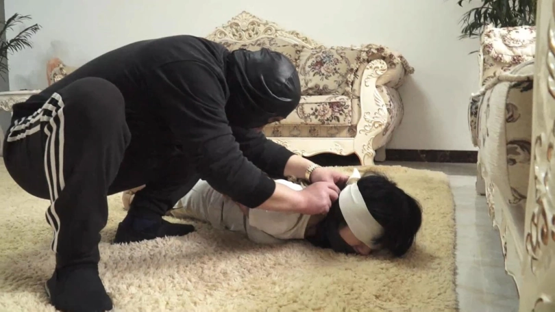 王蕾是一位女贼,四处作案,尤其喜欢偷好看的鞋子。这一次却不小心偷到了一位女老板的头上。虽然只取走了一些钱财和几双高跟鞋,可女老板却非常生气,她雇佣杀手惩罚这个女贼。杀手很快找上门来,绑住了王蕾。狡猾的王蕾声称希望试一试偷来的鞋,想寻找机会逃跑,不过被紧紧绑住的她怎么可能逃掉?杀手将她的双腿绑在柱子上,脖子上的绳套连着沙发腿。王蕾一动也不能动,插翅难飞......