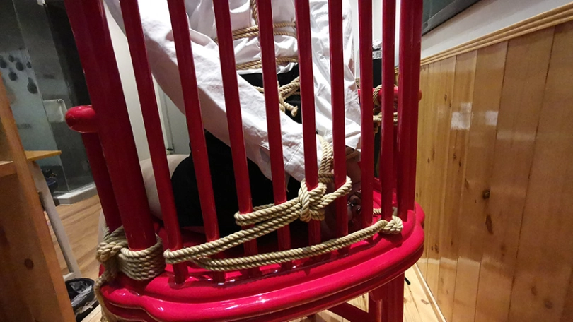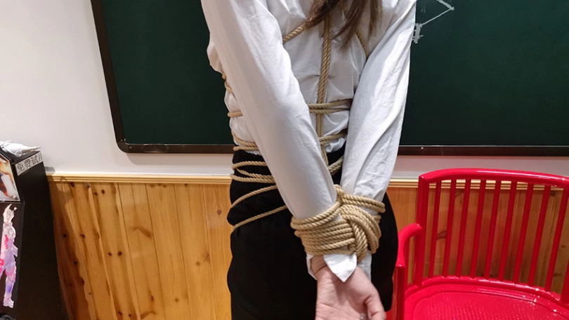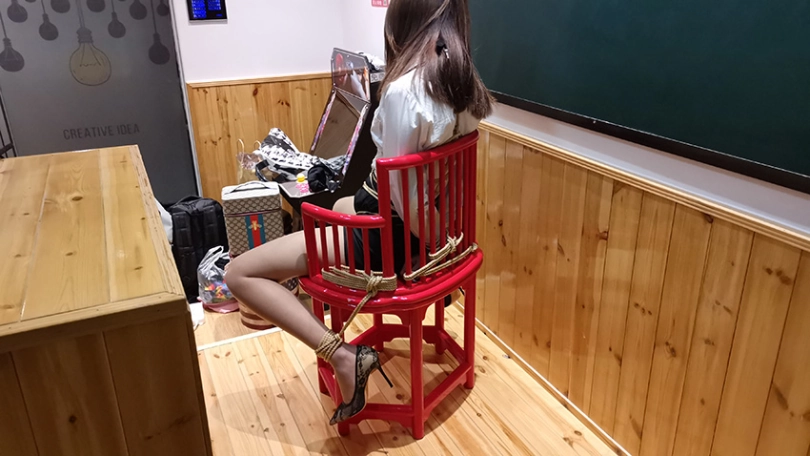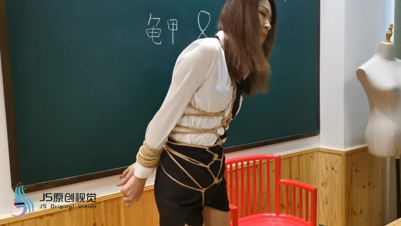 瑾萱在给学生上绳艺课程,但学生不听课,老师质问学生为什么不听课,学生不耐烦的说你讲的我都会。老师很不相信,于是学生说:“要不我绑你展示下怎么样?”老师答应了。绑好后老师用力挣扎,但学生绑的太紧,怎么也挣脱不了。最后老师认输,让学生帮忙解开。学生表面答应,来到老师身后,拿出迷药将老师迷晕,并将老师牢牢的捆在椅子上。老师醒来后,拼命挣扎,学生过来用老师的教鞭调戏老师。并用ZD棒刺激老师,老师被刺激的不断呻吟,扭动身体。。。老师会有怎样的遭遇,请看下集!