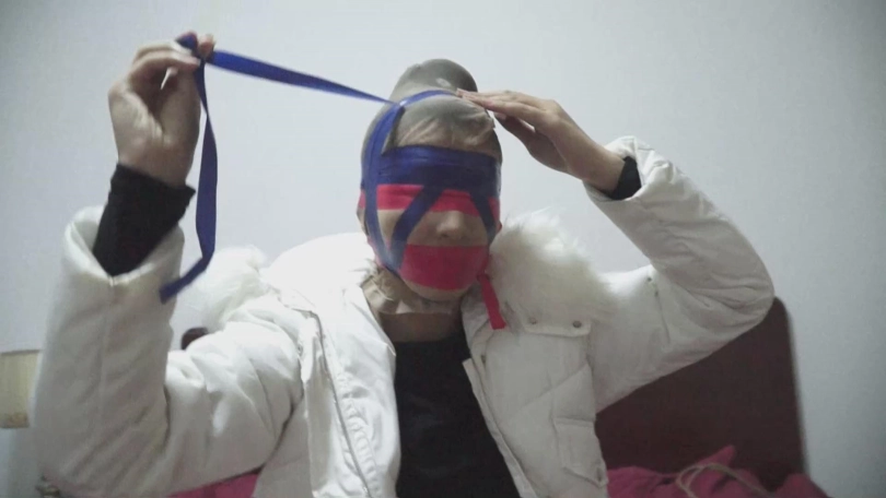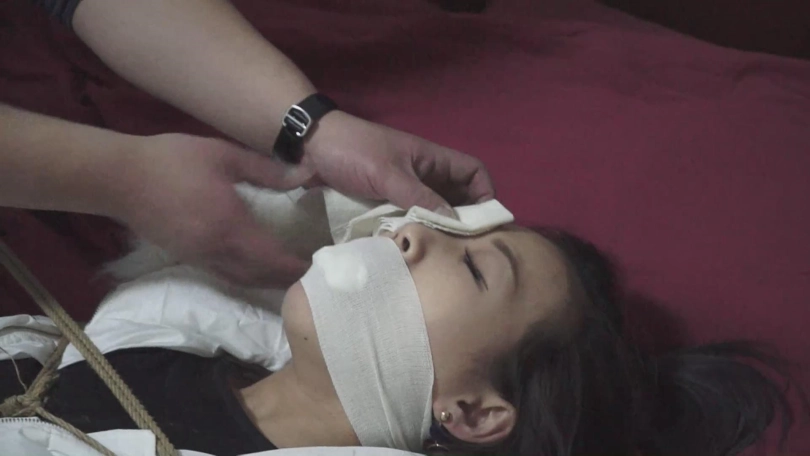 换了一种更严厉的方式,绑她在床上,蒙眼堵嘴,美女这回再怎么挣扎,也没用了。