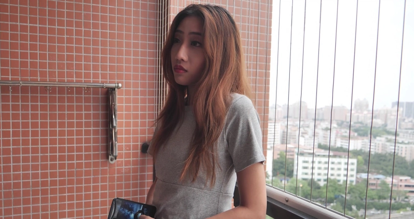 从一旁突然又跑出一个女孩,一把将此前的女孩拉到背后。