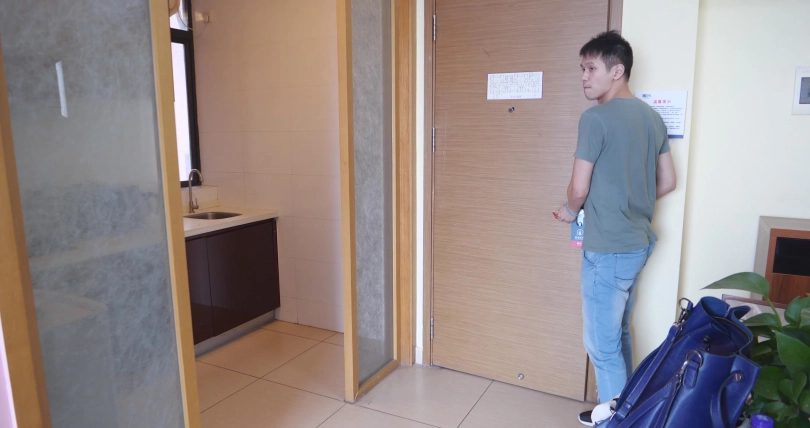 但是敲了半天没人开门,因为此时小张去上班了,而小徐此时被绑成狗一