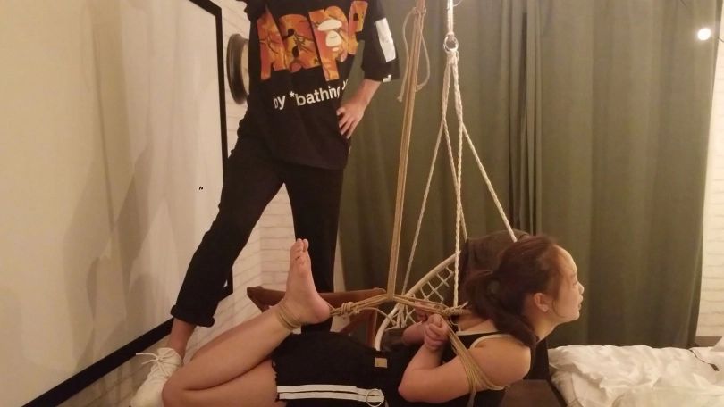 还是那个柔韧性很炸的妹子,简单试了一下驷马吊缚,可能绳子处理的不是很好。所以还不敢吊到空中,下次,有机会可以尝试一下。