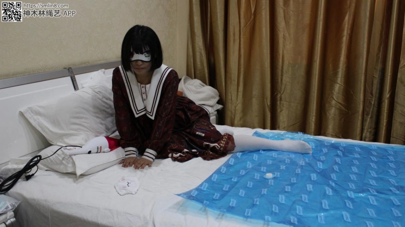 妹子还是第一次体验捆绑,害羞的很呢。不过绑成驷马就只能乖乖的趴在床上啦√