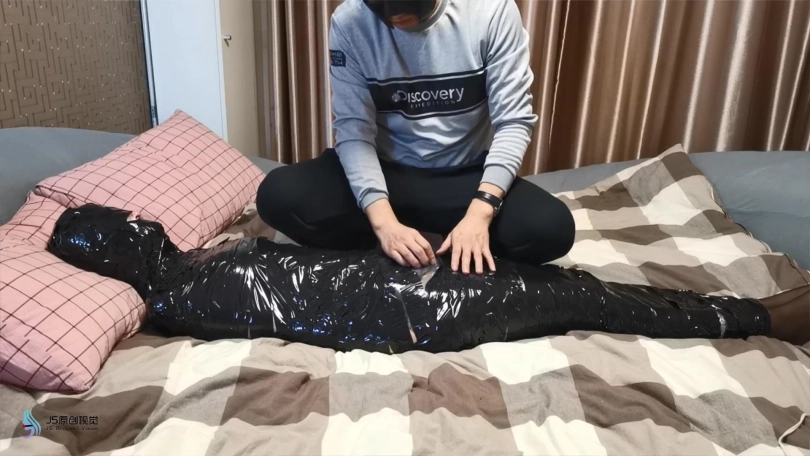 【JS】瑾萱 保鲜膜全包 胶带木乃伊 震动D刺激 原味棉袜封堵