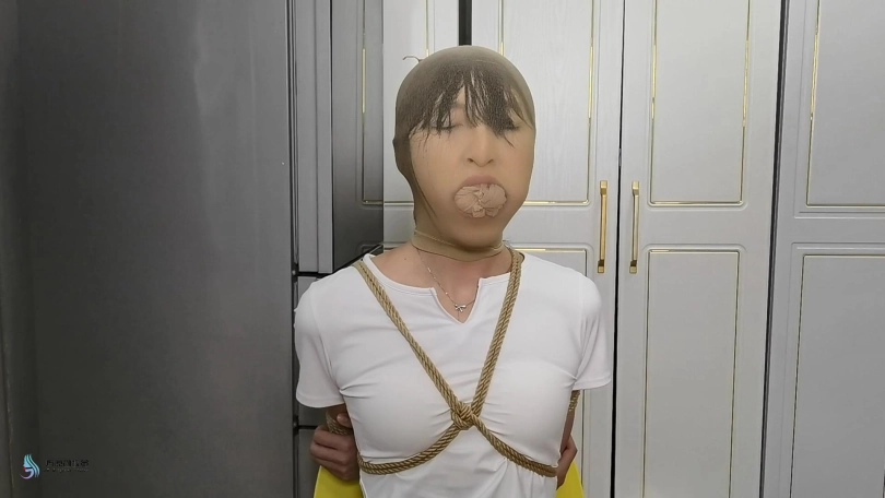 【JS】【欣妍】长靴女孩椅子捆绑丝袜塞嘴套头透明胶带缠绕棒棒刺激