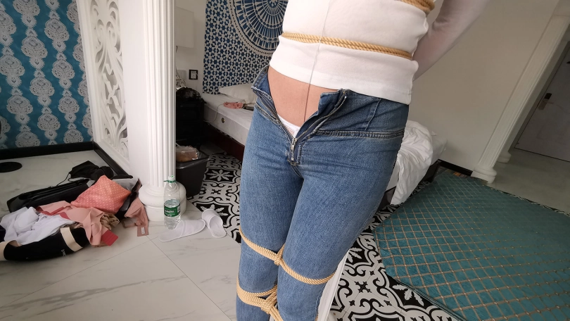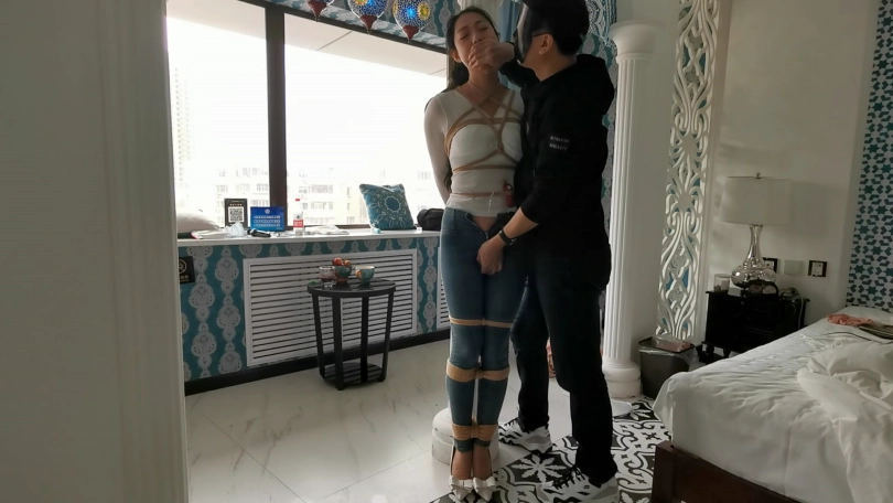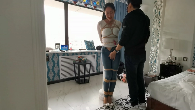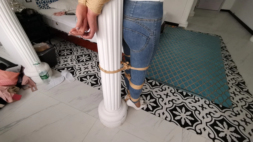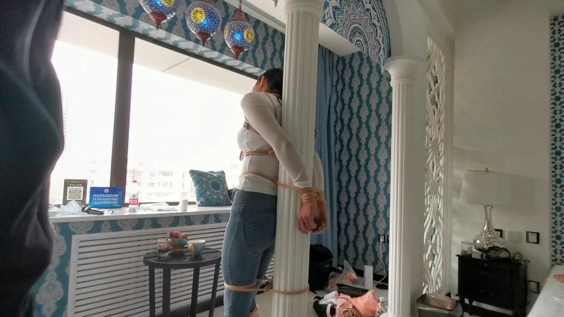 【JS】柱子缚 紧身牛仔裤 口球 挠痒挑逗
