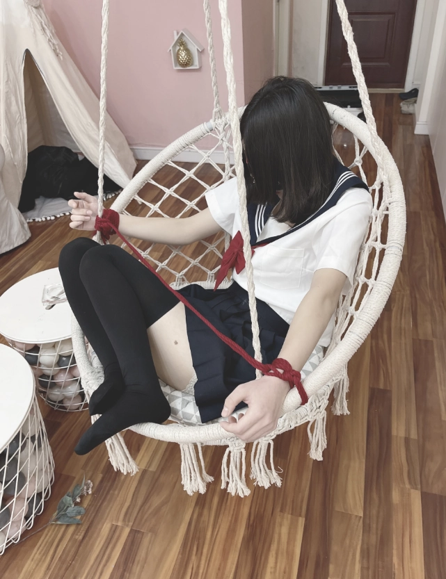 ①:把瑜儿双手绑在吊篮上,瑜儿坐在吊篮上被“封印”住,两只小脚在空中来回打着晃儿,被抓住脚腕自由TK。