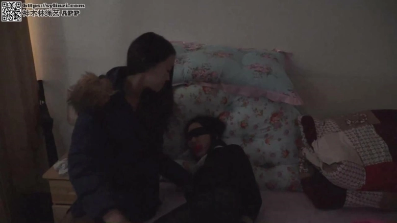 那人把冬岚的红色羽绒服脱下,见她里面穿着毛衣,就把冬岚的双手扭到背后,又用绳子捆了起来,然后用绳把手固定在身体上。冬岚郁闷,手还没有完全放松,怎么又被捆上 了?   那人松开把冬岚的脚捆在椅子上的绳子后,又把冬岚的脚牢牢地绑在一起,然后把她横抱起来放到床上。就这样,冬岚被捆绑着手脚,堵着嘴,昏昏的睡去了。   第二天冬岚被摇醒,松开脚抬到厕所排泄后又被放到床上捆好,然后封嘴胶布被撕下,水泠泠的棉花团被掏出,接着喂了早饭和水。完后,那人又向冬岚嘴里塞进了一大团红色 的丝巾,冬岚的嘴里没有了任何空余的空间,那人又用布条将冬岚的嘴紧紧的勒住,防止她吐出堵嘴的丝巾。   那人很不情愿的说:“我要出去了,你在这儿老实的呆着,等我回来就和你好好玩耍。”说着用黑布蒙上了冬岚的双眼,冬岚又陷入了无尽的黑暗之中。那人似乎取下伪装后就 出去了。   听了他的话,冬岚完全明白他要干什么了。她在床上扭动着身躯,想把绳子挣开,离开这个危险的地方。但是绳子太紧,根本无济于事。她又想把嘴里的丝巾吐出来,但是丝巾 被勒嘴的布条牢牢地固定着,没用。   冬岚把脸与床摩擦,想把蒙眼的黑布蹭掉,黑布蒙得很紧,冬岚累得半死,也没有半点成功的迹象。冬岚绝望的大叫,但是声音都被嘴里塞得满满的丝巾吸收了,而且还被勒嘴 的布条挡住了,发出的只是微弱的“唔唔”声…………   挣扎了一会,冬岚听到了撬门的声音,然后是高跟鞋的声音。然后,她闻到了一股熟悉的幽香。   蒙眼布被摘掉了,在冬岚眼前出现的是一个长发美女,亭亭玉立,而且冬岚还认识她。她叫火美,是冬岚的同事。她“唔唔”的叫着,想让火美解开她。   火美伸手拔出她嘴里的布团,冬岚说:“火美,快解开我呀!”   “要是我不想解开你呢,因为我很喜欢捆绑美女。”火美阴阳怪气的说道。   “没想到你是这样的人,我哪点对不起你了!”冬岚骂道。   “我喜欢,怎么着!你知道吗,在你来之前我一直是逍遥仙境的头牌,男人都围着我转,我就像女皇一样。但是你来之后,他们都认为你比我更漂亮,更有气质,更迷人,于是 他们扔下我都去围着你转了,甚至本来是我男朋友的老板都把我甩了,成了你的男朋友,我都快气疯了!从此我就很想把那些美女们捆绑起来,特别是你,我的大美人,我特别想把 你结结实实的捆起来,然后严严实实的堵上嘴,蒙上眼,可没想到我能捡个现成的。”火美说。   “我根本没接受老板的追求,我只是敷衍他,我才不会为了钱接受老男人”冬岚怒道。   “靠!你长得太漂亮了,吸引了他,这就是过错!我早就想报复了,可是没有机会。我昨天无意间发现纪日行那个屌丝在你的房子周围鬼鬼祟祟的,就跟踪了他,没想到他把你 绑架了。”火美笑道。   “居然是他!”冬岚惊讶的大叫道。 “叫什么叫!”火美拿起一团布就塞进冬岚嘴里。冬岚绝望的叫着,但是眼睛被蒙上,被抱到了床上。 纪日行是她们会所的一位常客,每次去都点冬岚给她按摩。熟悉了以后,就开始追求她。纪日行的条件倒也不差,不然也去不起逍遥仙境,可不知为何冬岚就是不喜欢他。被追的烦 了,冬岚还指示保安把他打了出去,难怪他会来报复。   火美说:“纪日行快要回来了,我得带你转移去我家。这次太匆忙,没有准备车,得带着你在外边走了。   冬岚暗自高兴,心想:“一到外面,别人就能看见我被绑着,被堵嘴了,我也可以见机行事。”   火美说:“美女,你就走着瞧吧,现在可是寒冷的冬天。”说着,把冬岚拉起来,让她站着。   火美把冬岚的两条手臂已和身体连为了一体,怎么动也动不了了。接着,火美把冬岚那件又厚又大的羽绒服给她小心翼翼的穿上,把羽绒服拉好拉链、扣好后,把两只袖子放进 羽绒服那深深的口袋里。这样,外人看了,还以为是女孩正把双手插在羽绒衣的口袋里防寒呢。   下面的工作是堵嘴了。火美在原来的基础上用一根布条紧紧的勒住了冬岚那塞满棉布且棉布还露出一截的小嘴,那布条在脑后使劲的绑着。布条较窄,只从塞满布的嘴的中间勒 过,由于太紧,布条已略微凹进那露出的塞嘴棉布里,使布条上侧和下侧的未被布条遮住的露在嘴外的塞嘴白布略微凸了出来。   接着,一大块高性能胶布贴到了那既有塞嘴布,又有勒嘴布条的嘴上,使冬岚的嘴牢牢地密封起来。胶布很大,把鼻子以下的半个脸遮去了一半。然后,一条很宽的蓝色布带紧 紧的蒙在了那贴着高性能胶布的嘴上,布带在脑后用力的绑紧。布带很宽,把鼻子以下的脸全给蒙住了。   冬岚几乎窒息,只有靠小鼻子拼命的呼吸,她半点声音都发不出来了。   火美笑道:“美女小姐,现在你这个样子真是迷死人呀!但还要给你掩护掩护,不能让人发现你的嘴已失去自由。再委屈委屈吧!”说着,从口袋里拿出一只特大号的蓝色无纺 布口罩,又说:“这口罩透气性好,给你戴上吧,你不会憋死的。”说完,给冬岚戴上了口罩,口罩带在脑后紧紧的系住。   口罩很大,上端抵住了下眼皮,下端把整个下巴都包住了,口罩的两端都快接近了耳朵。这样,蒙嘴的蓝色布带被掩盖住了,但是脑后的布带还露出来。口罩戴得很严密,把鼻 子、被布蒙住的嘴和大部分的脸紧紧的蒙住。幸亏无纺布的透气性很好,不然冬岚就得憋死。   火美又用透明宽胶带把口罩带牢牢的固定在冬岚的脸上和头上。   然后,火美又取出一条很大的黑色纱巾。冬岚不