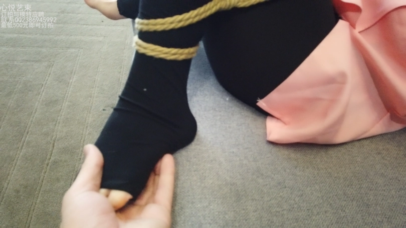 筱筱的一双黑丝美腿被绑成M型,只能接受咸猪手的洗礼。一段时间后破坏掉小美女的脚部丝袜,露出白嫩的小脚丫,继续疯狂TK。筱筱已经快要被挠的抓狂了。